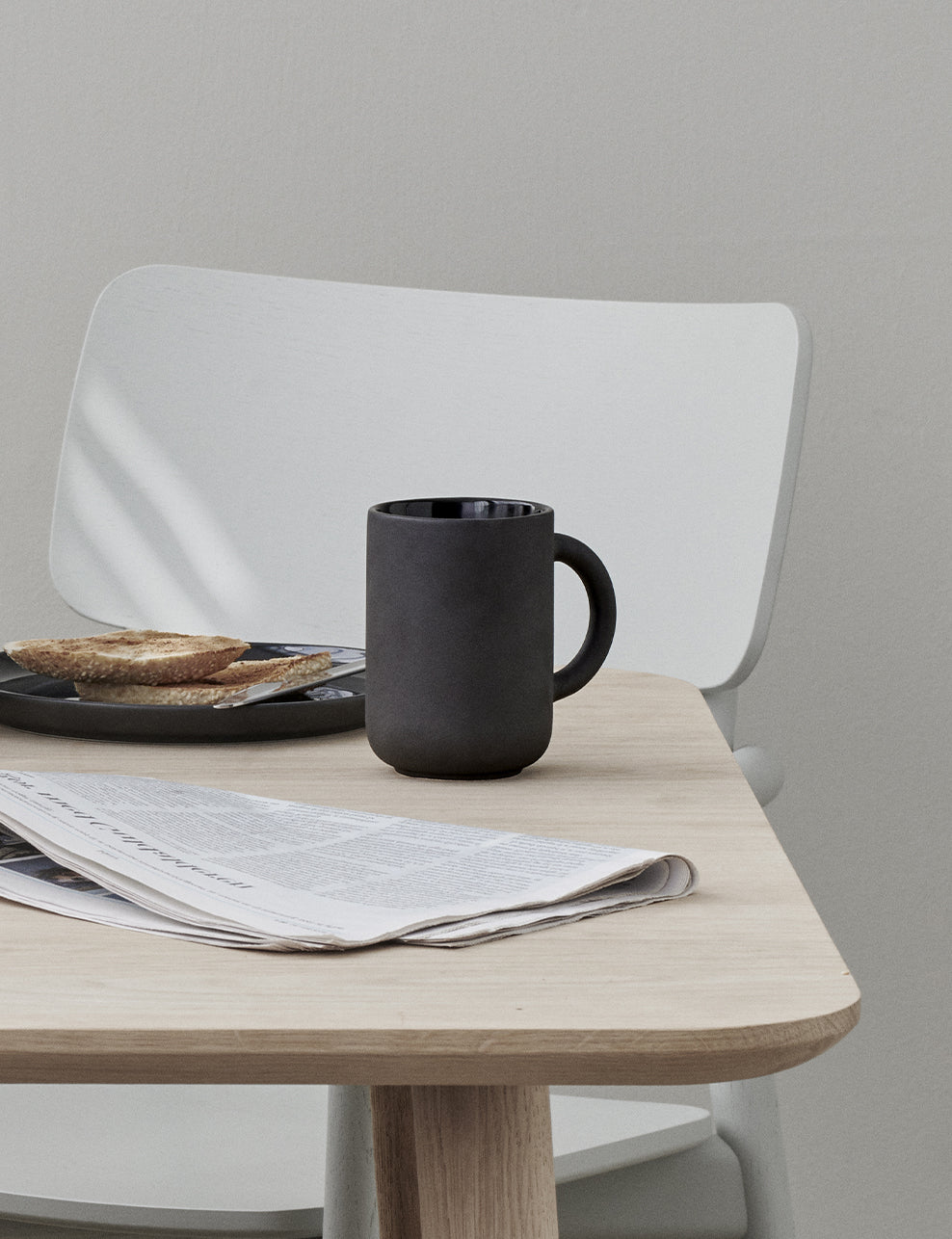 Make your brunch, lunch or five o’clock tea table look stylish with the Theo black stoneware lunch plates and large mugs. They feature raw stoneware on the outside and are glazed on the inside for an elegant expression.