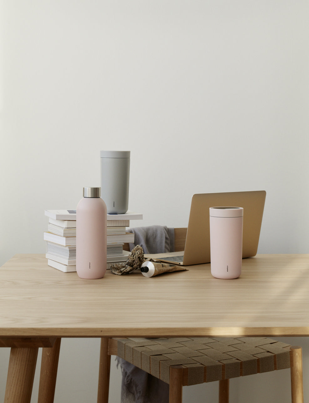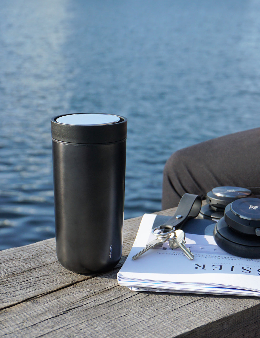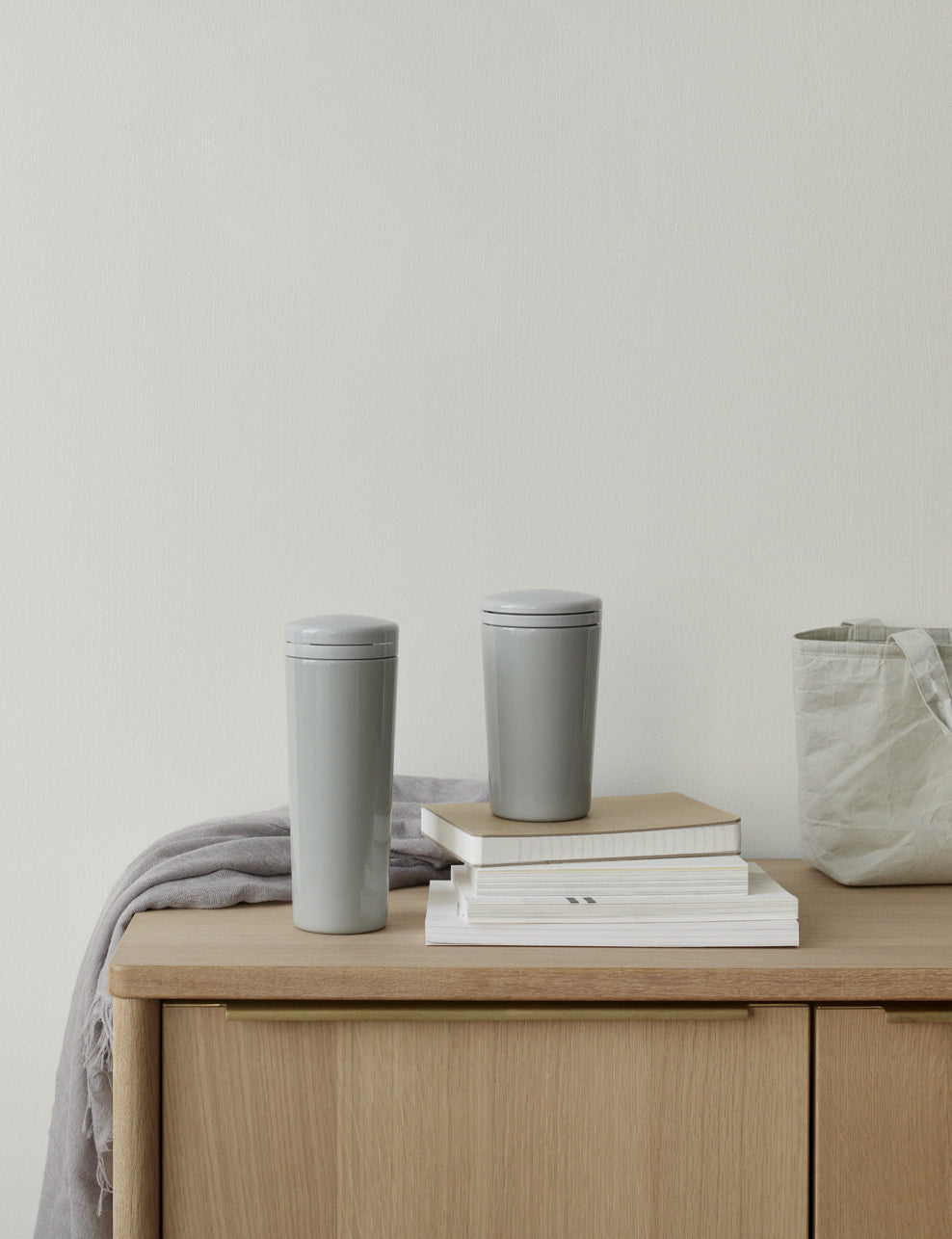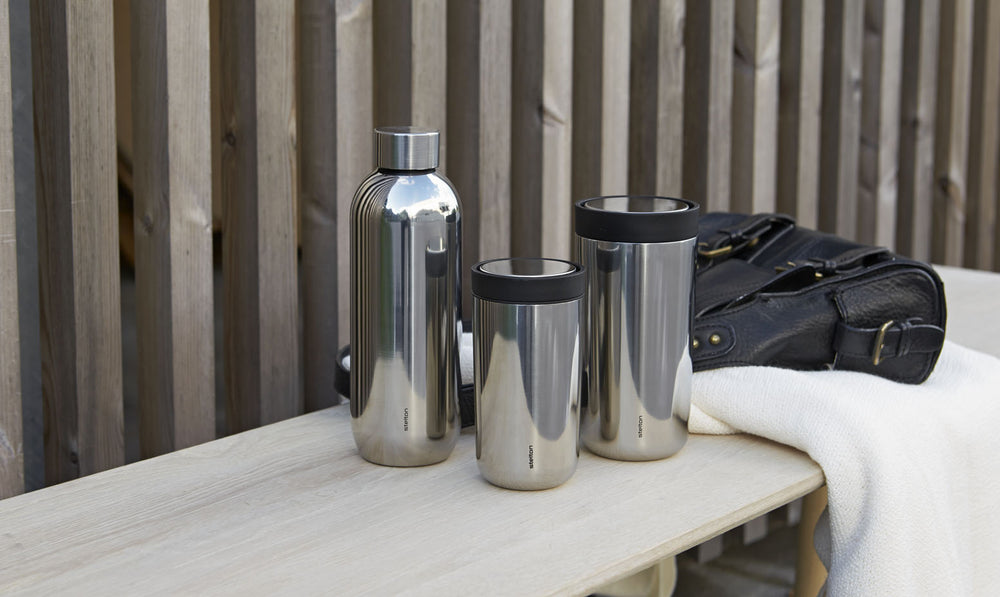 Stelton to go cups and drinking bottles are perfect for both hot and cold drinks during a walk-and-talk, when commuting to and from work, shopping, or simply whenever you are on the go. The travel mugs and thermos bottles are made of high quality stainless steel. The large to go cups are double-walled and with vacuum guaranteeing a long-lasting thermal effect, and retaining the temperature of your favourite drink for many hours, whether you prefer warm coffee or iced-coffee, hot tea or cold water. See the specific details on the various models.