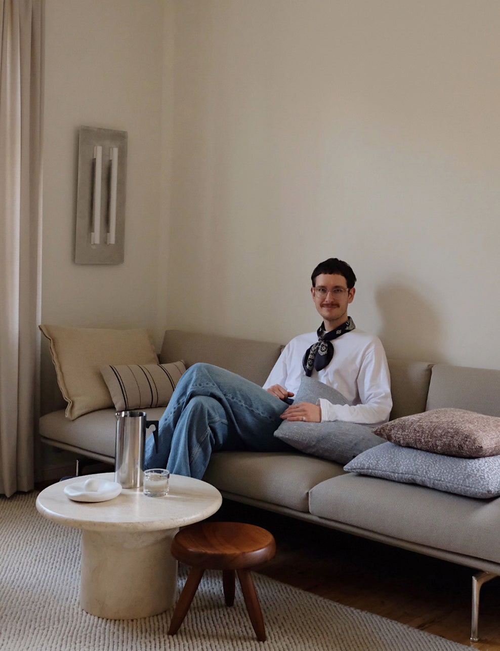 Christoph’s approach to design is curated and minimalist, yet cozy. “Our style evolves naturally, shaped by our lifestyle, cultural surroundings, and creative environment,” he explains. Every object in their home serves both aesthetic and functional purposes, from design classics to vintage finds.