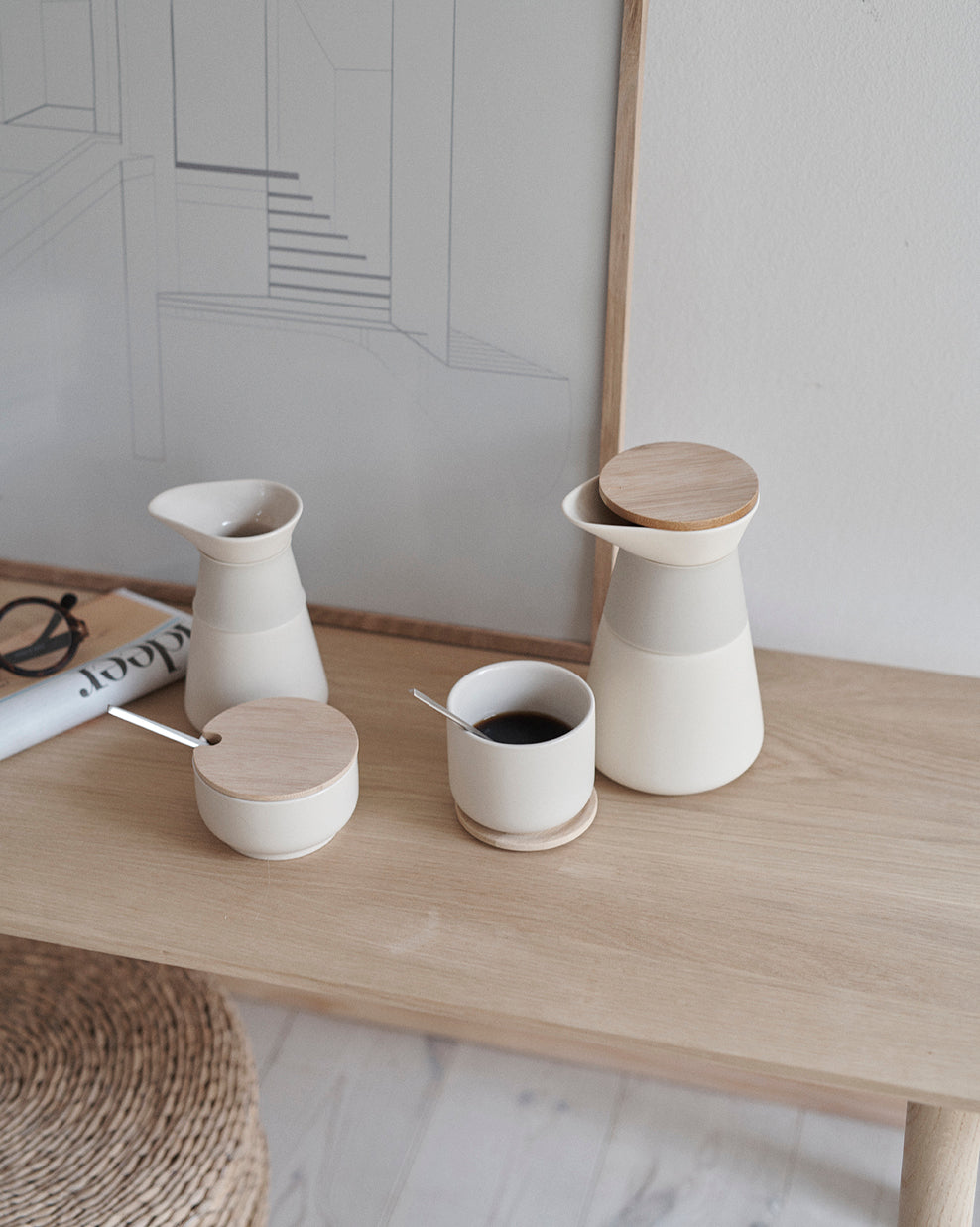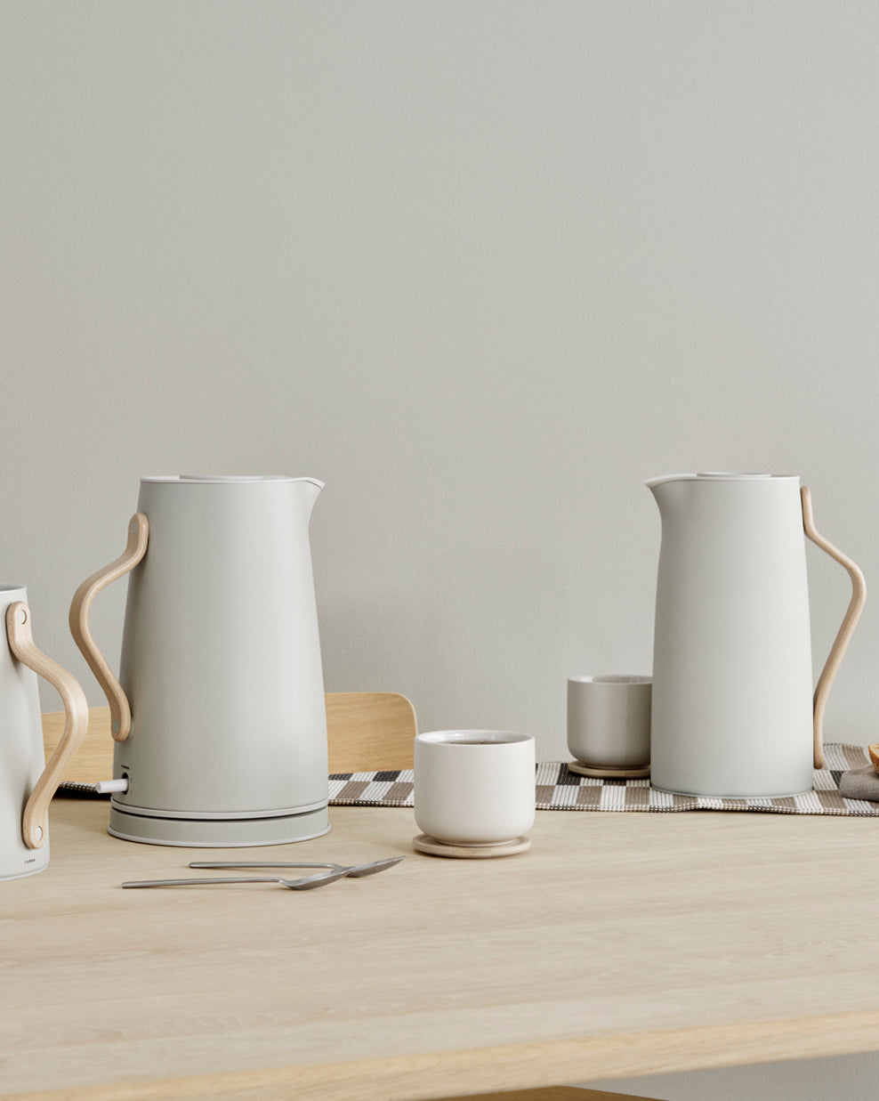 Our popular Emma collection also includes a selection of vacuum jugs featuring stylish design and a Nordic colour palette. The main features of the Emma collection are the shaped handles in beech wood and clean lines. The vacuum jug is easy to use and opens and closes with a single click on the lid.