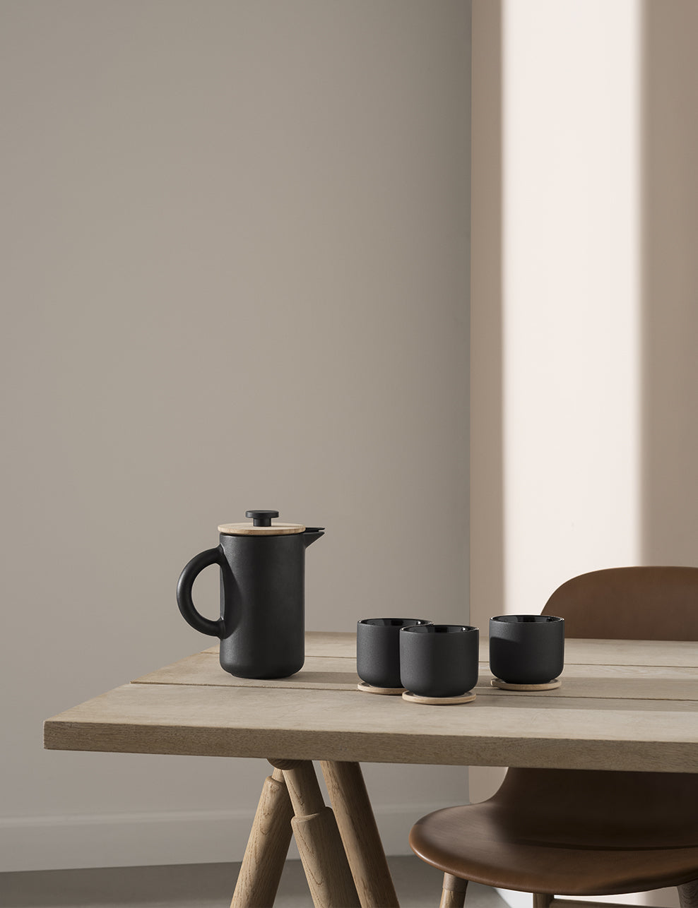 Our range includes a variety of French press designs. The Theo French press coffee maker is made of matte black stoneware in a style that combines Scandinavian design with Asian culture. If you are a fan of simple design and clean lines, the world-renowned EM77 jug is also available in a French press coffee maker version, so you can enjoy your coffee brewed directly in this stunning design.