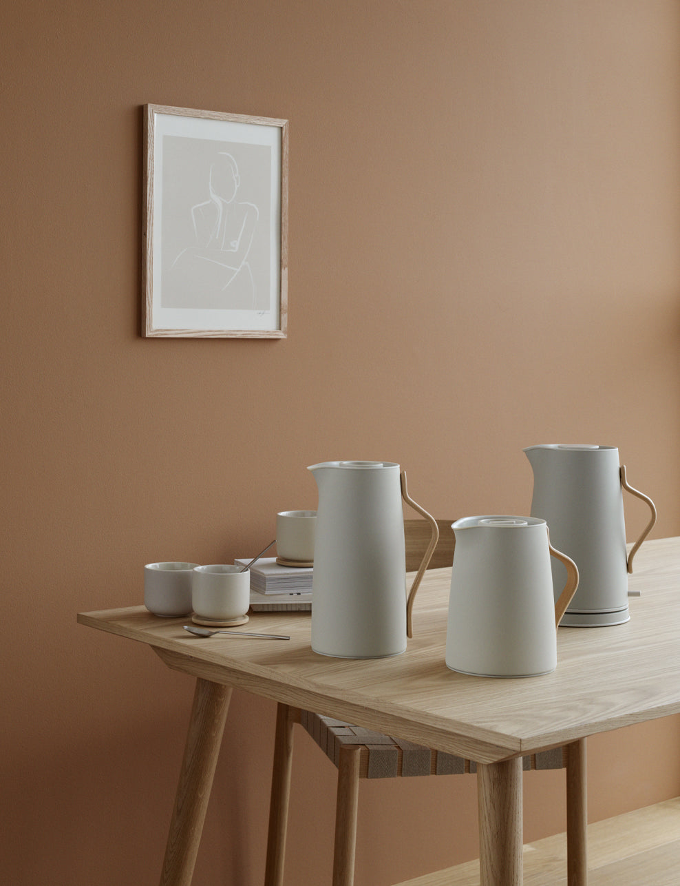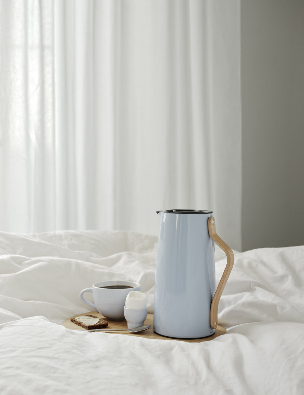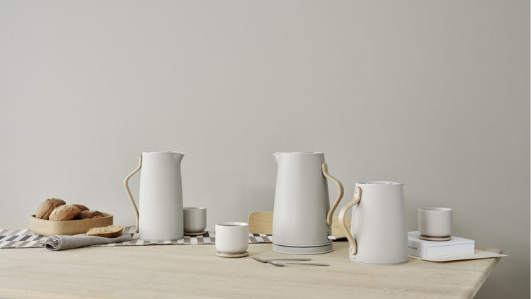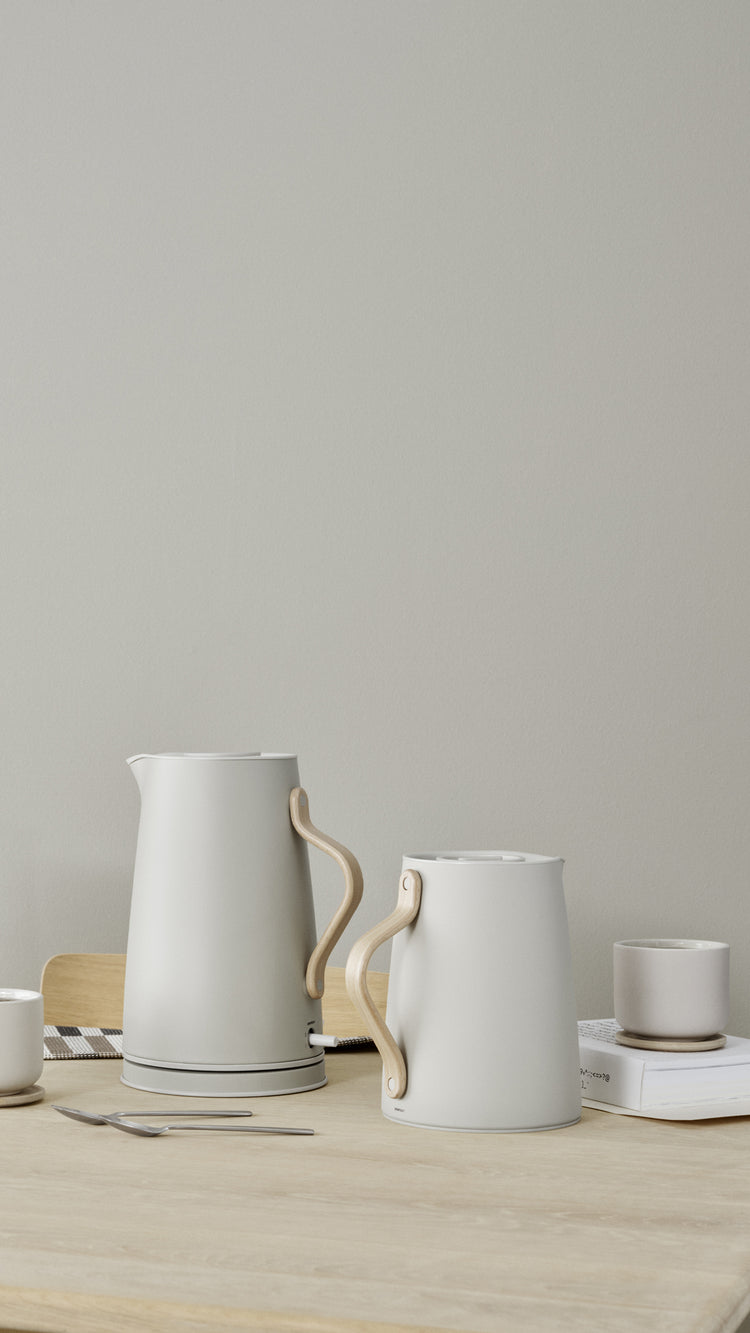 The Emma series, with its simple and elegant lines, is a beautiful addition to any kitchen counter or dinner table. The combination of stoneware and lacquered metal with details of moulded beech wood fits perfectly into a modern home. Emma includes everything from vacuum jugs to electric kettles and toasters. In the Emma collection, you will find everything you need to set an inviting table from cups and plates to thermos, electric kettles and toasters.