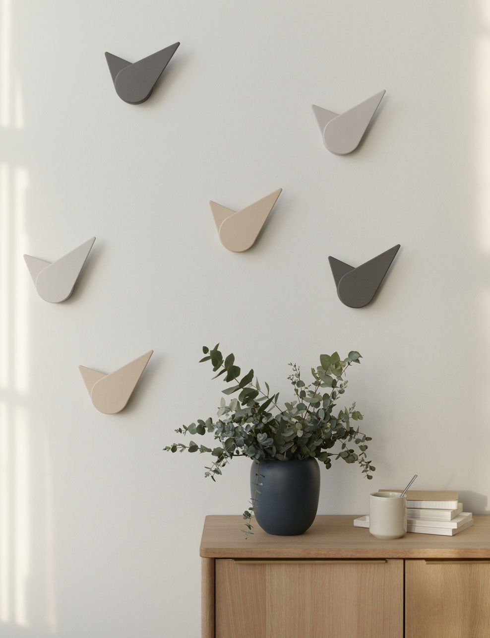 Birdie is a sculptural wall clock designed by German designduo Böttcher & Kayser. With its graphic look and slightly humorous design, the clock is a beautiful example of functional design.