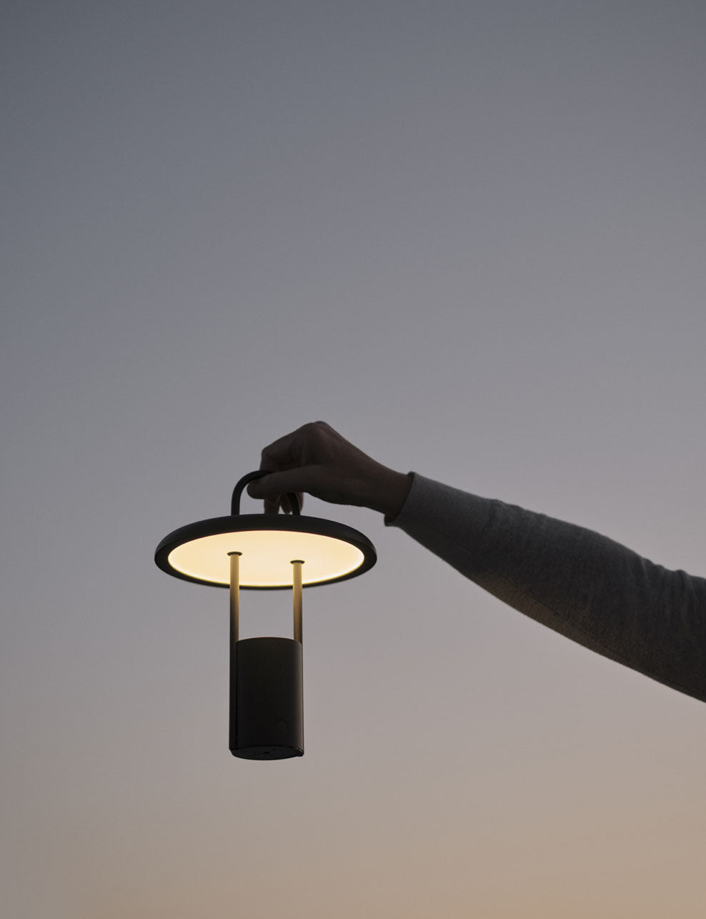 The lamp is crafted from iron with a matte, black or sand-coloured finish, and the minimalist and modern design idiom ensures that the lamp can be placed throughout the home, such as on the garden table, in the windowsill, or on the desk. The very long battery life with low brightness also ensures that Pier makes a great night light.