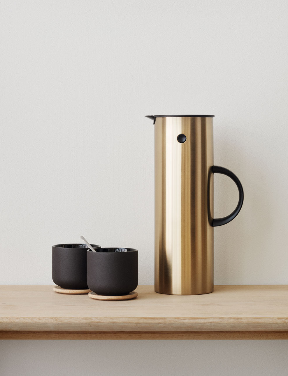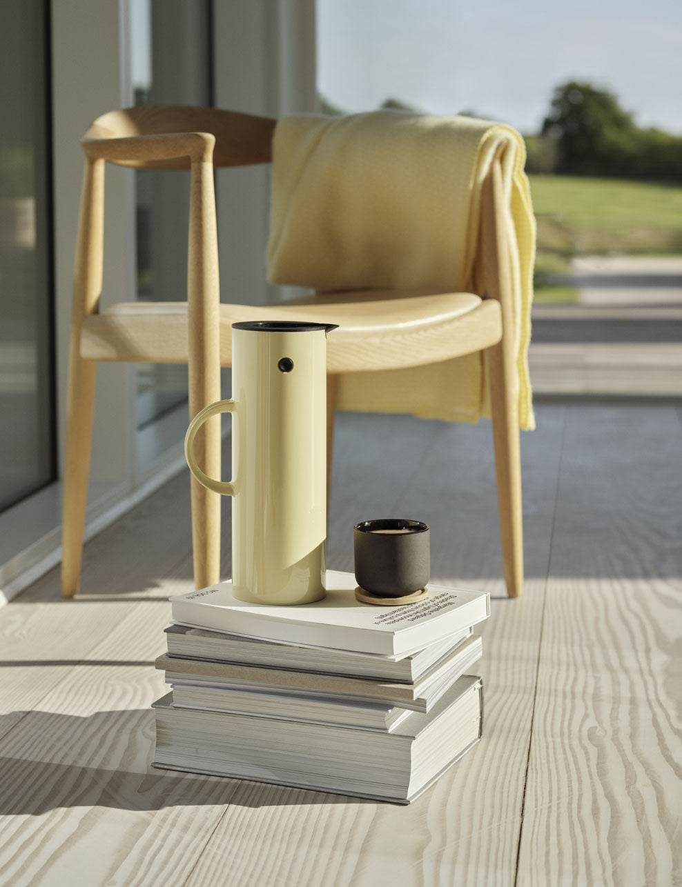 The EM77 vacuum jug with the unique rocker stopper was created by the Danish designer Erik Magnussen in 1977. Since then, it has been produced in more than 100 different colours.