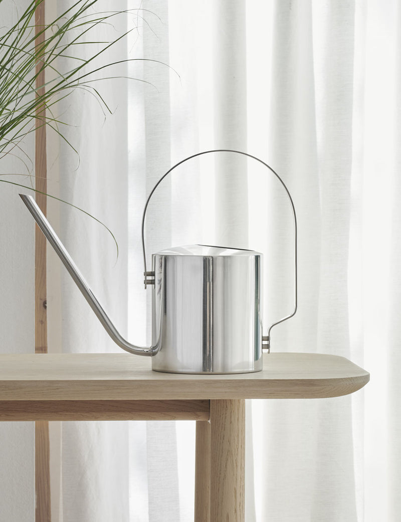 With its simple design in which the handle and pouring spout appear to continue as one, functionality meets aesthetics and in addition to its original function it is also a decorative object when not in use. The long, slender pouring spout makes it easy to water even very narrow vases without spills, and the intelligent design ensures that the watering can remains drip-free.