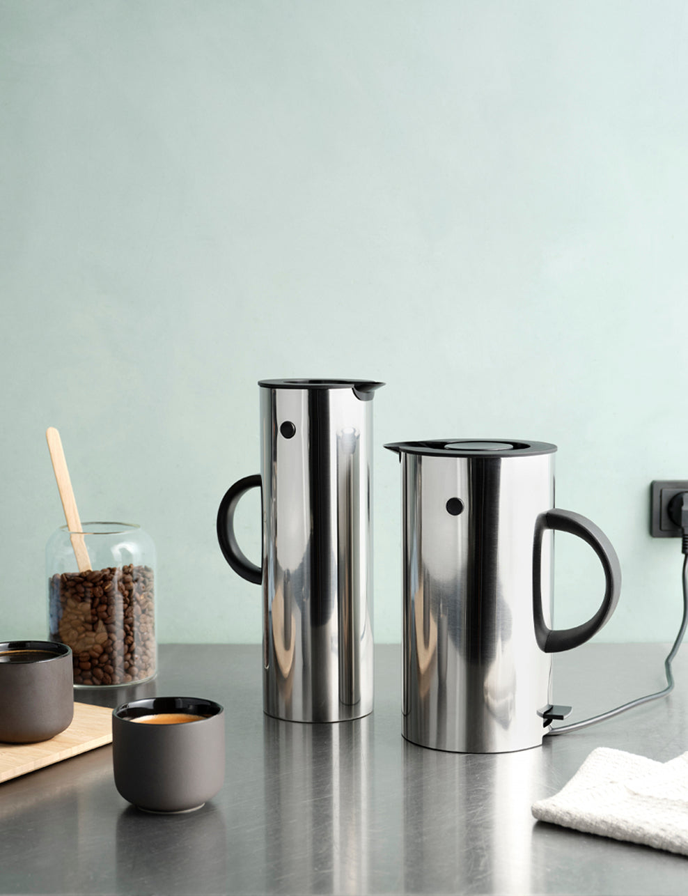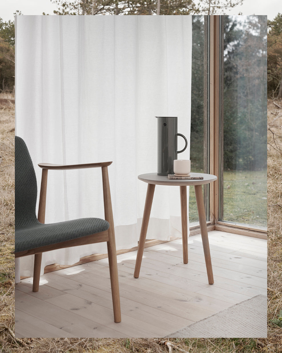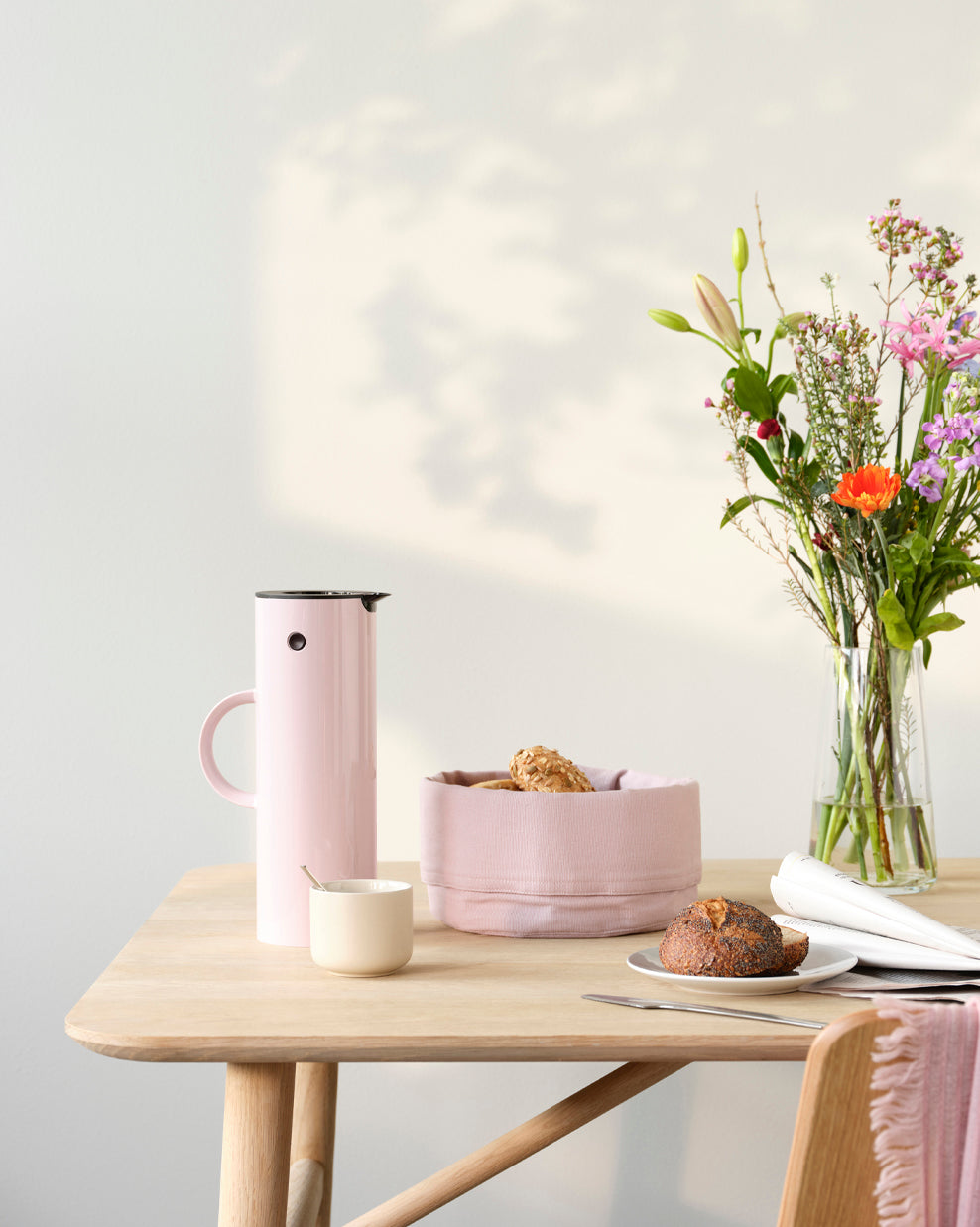 The autumn colour choice of the classic EM77 vacuum jug paves the way for a peaceful and personal coffee break. So, lower yourself into the chair, let the sense of calm envelop you and enjoy your coffee break. Or fill the EM77 vacuum jug with coffee, tea or hot cocoa and replace the original tilt cork with the picnic cork and take the vacuum jug and the family out into nature and enjoy the presence and your hot drink there.